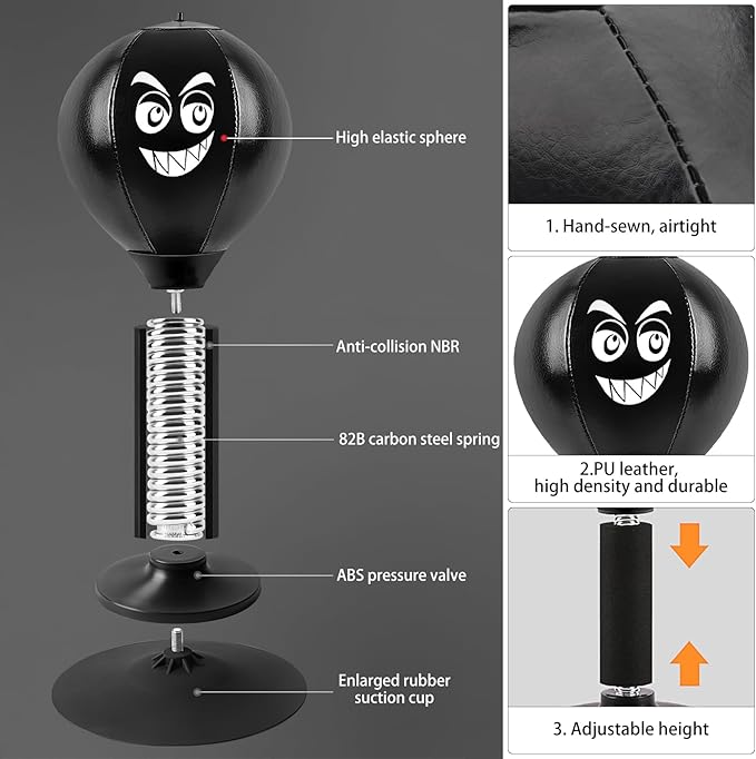 Der Punching Ball besteht aus robustem, weichem Material und ist durch sein elastisches Zugband besonders gelenkschonend. Er federt jeden Schlag sicher ab und kehrt sofort in seine Ausgangsposition zurück – für endlosen Spiel- und Trainingseffekt.